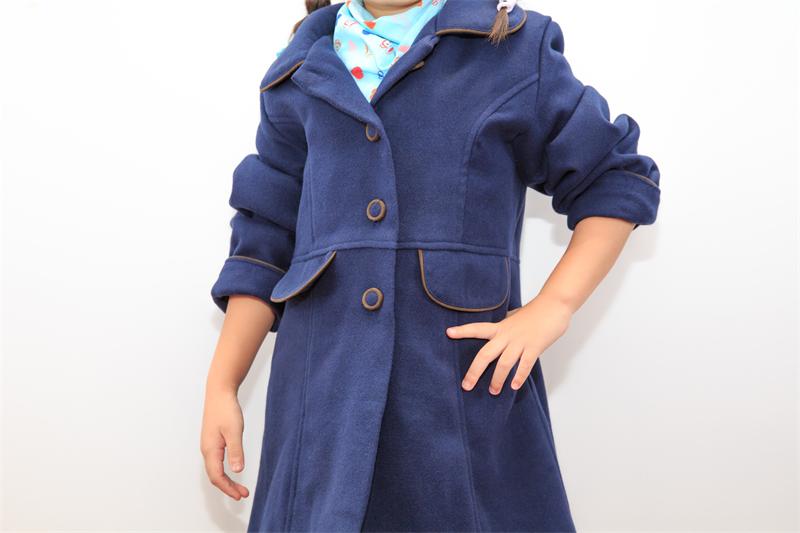 Introducing our girl’s coat, a chic blend of comfort and style. The soft 88% polyester 10%viscose 2%elastane fabric, coupled with piping decoration, creates an elegant yet practical piece.